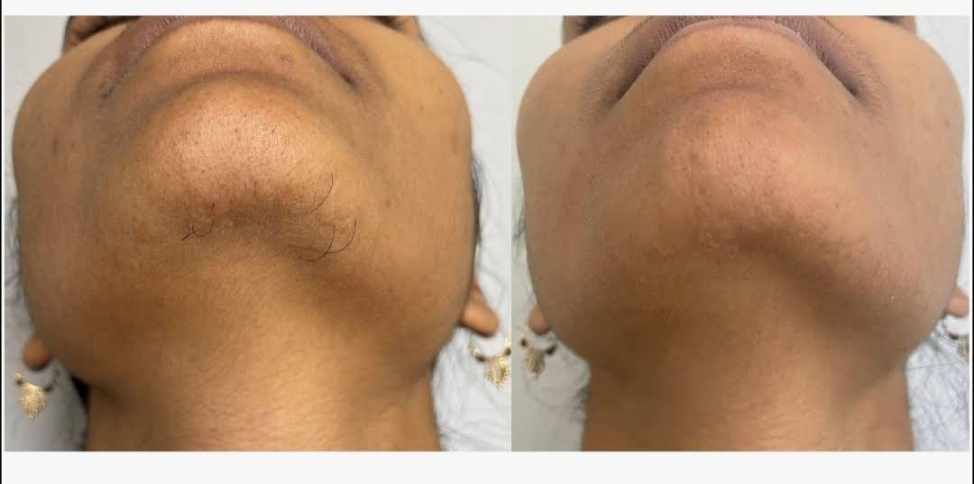 Before starting laser hair removal at Collagen Clinics, patients undergo a detailed skin analysis, hair assessment, and a patch test to determine the safest and most effective laser settings. The “before” skin usually shows visible thick hair, uneven skin texture, and sometimes dark pigmentation or razor bumps caused by waxing and shaving. These issues are especially common in underarms, bikini areas, and chin regions.