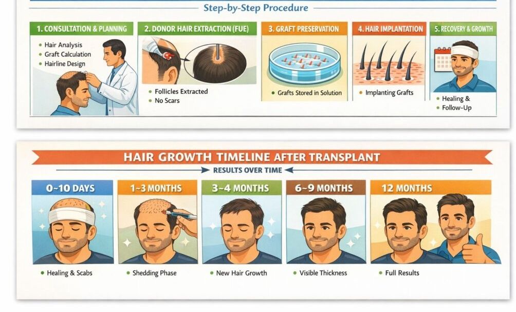A medically planned hair transplant in Agra follows this sequence: